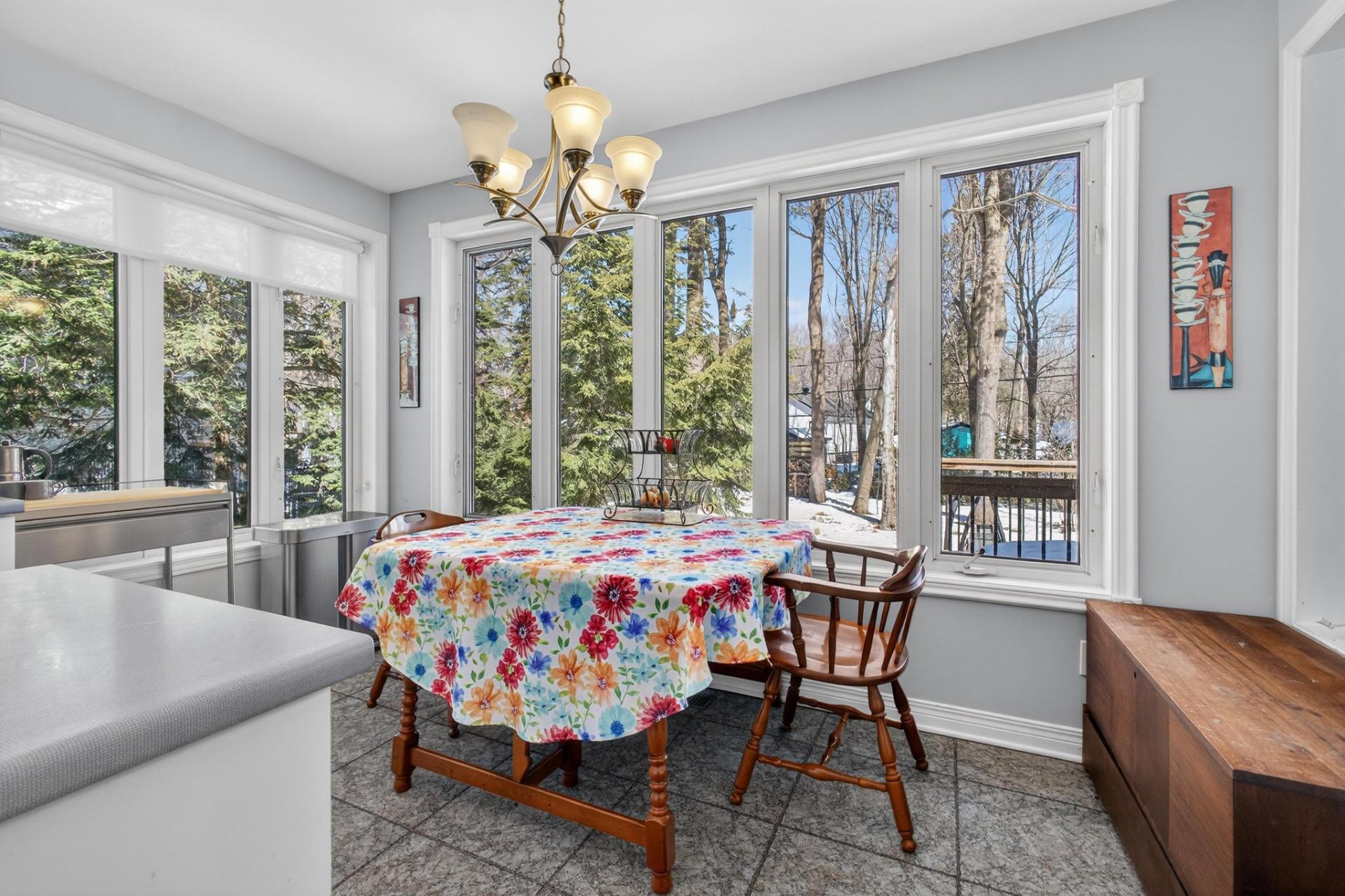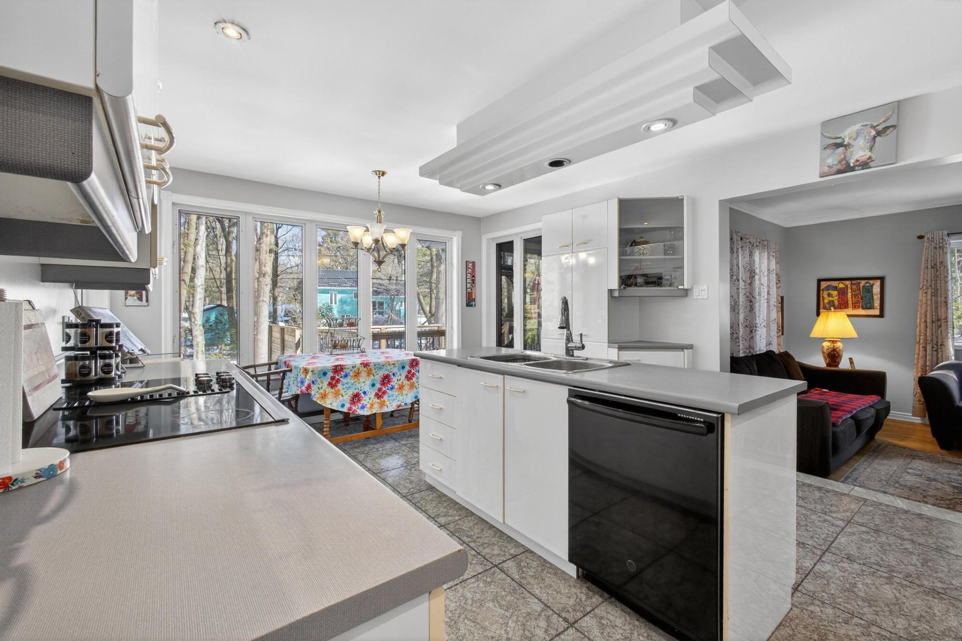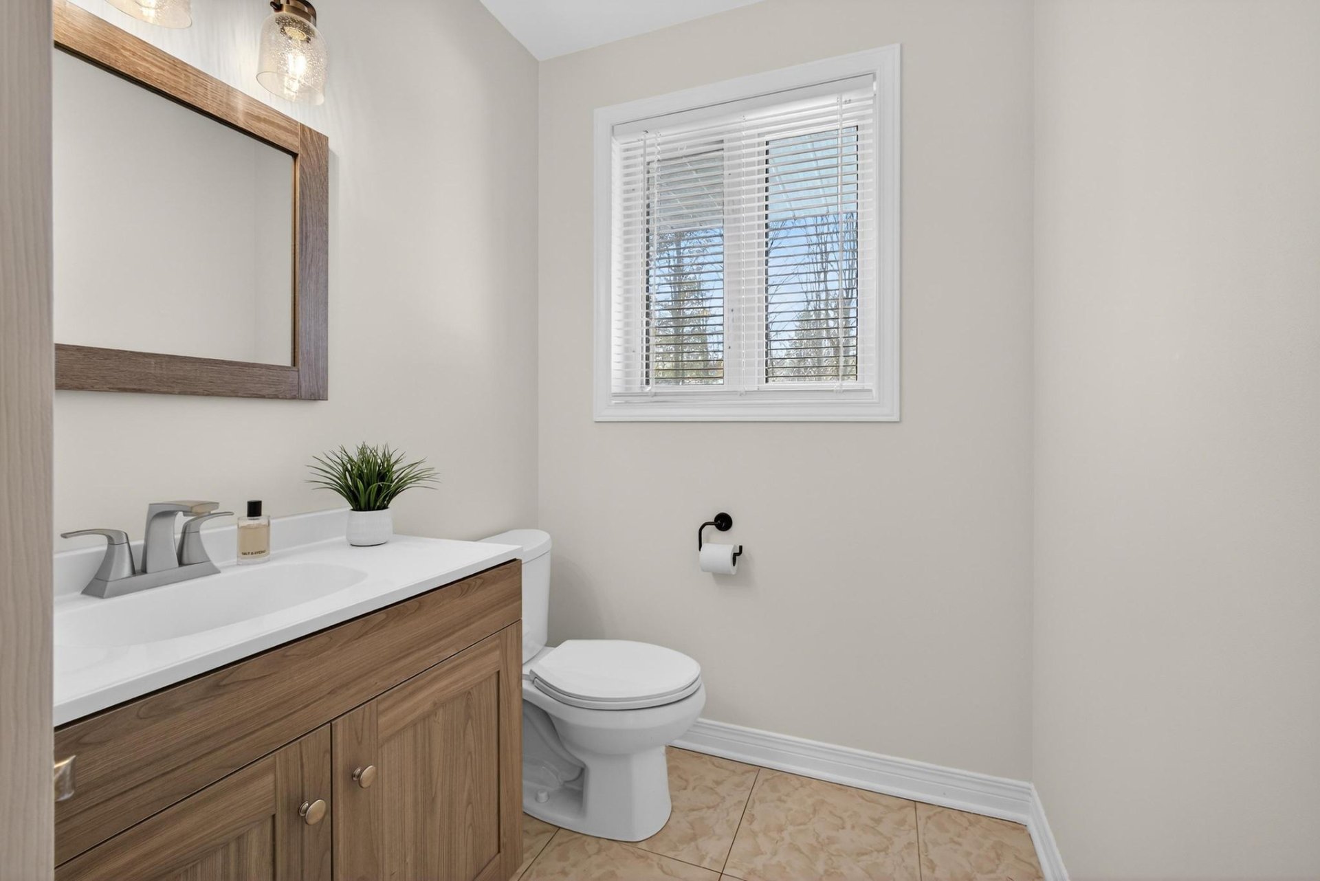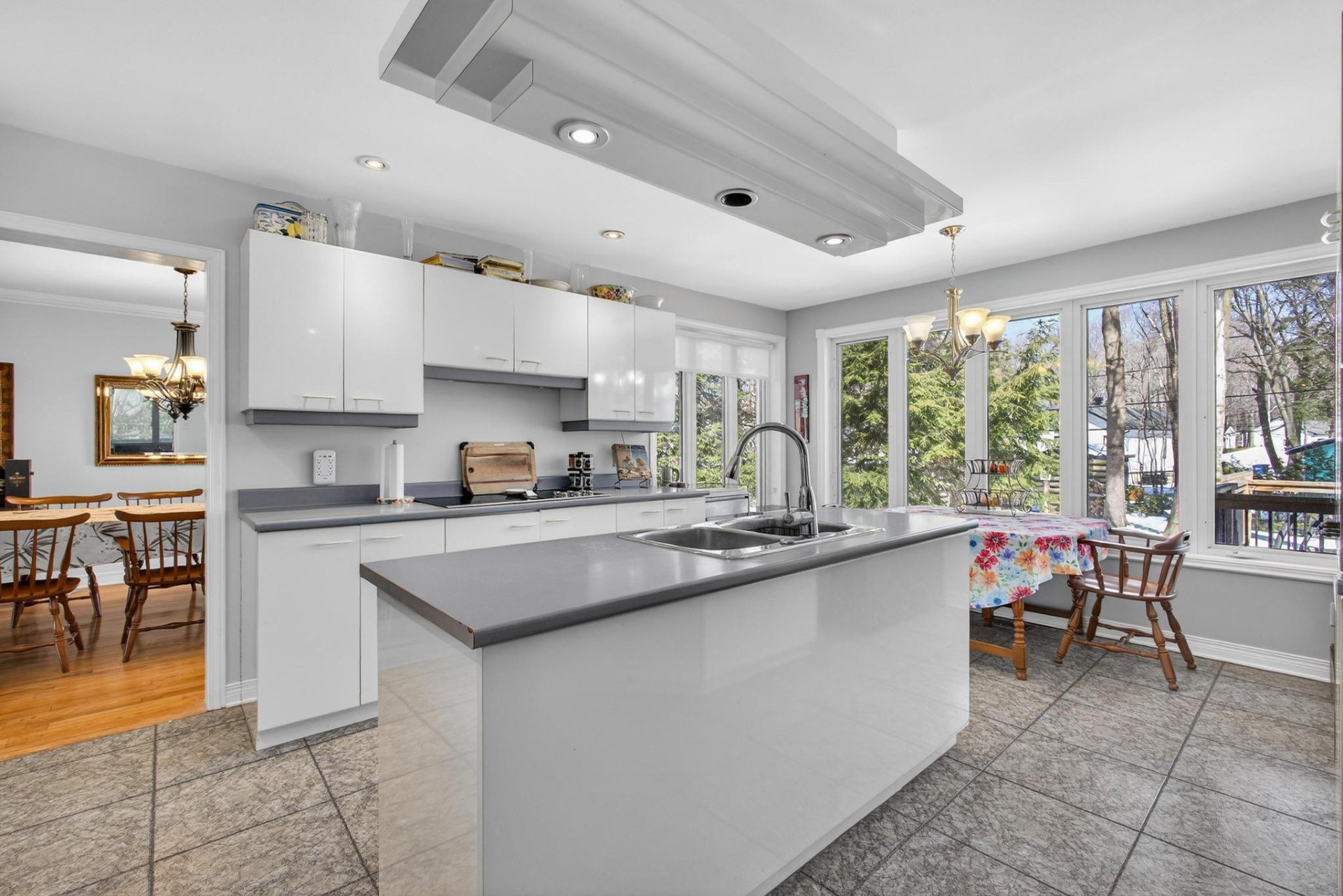 Rez-de-chaussée Le rez-de-chaussée propose des espaces de vie chaleureux et bien définis, incluant un salon et une salle à manger formels, idéals pour recevoir. La cuisine, conviviale et fonctionnelle, est agrémentée d'un coin-repas lumineux avec vue sur la cour et s'ouvre sur un salon familial en contrebas avec foyer, créant un espace de rassemblement naturel. Une salle de lavage indépendante, une salle d'eau ainsi qu'un accès direct au garage double complètent ce niveau.