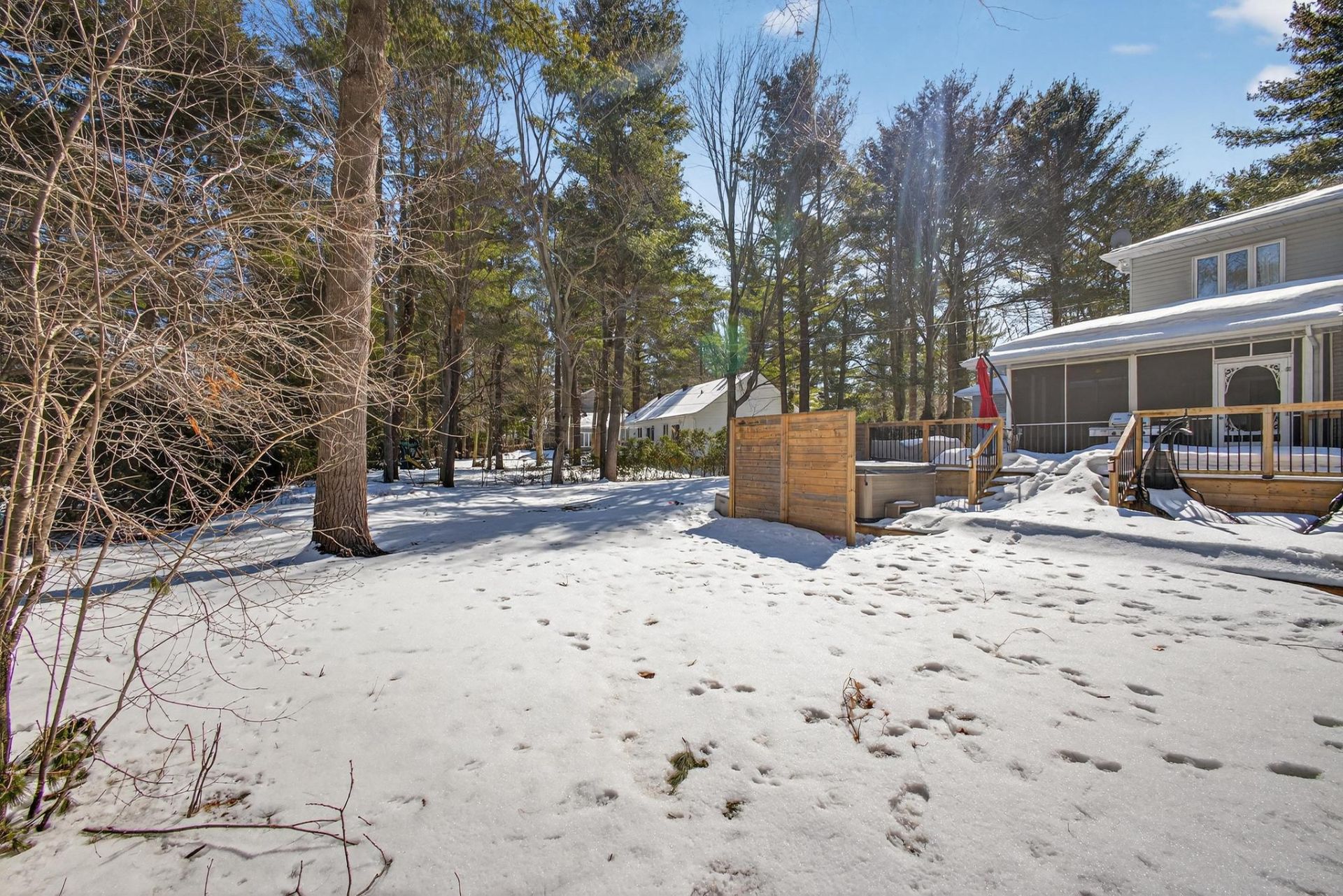 Extérieur et mode de vie À l'extérieur, vous profiterez d'une cour entièrement clôturée et aménagée avec soin, ainsi que d'une vaste terrasse, idéale pour recevoir ou simplement relaxer dans un environnement paisible et boisé. La véranda grillagée permet de prolonger les moments à l'extérieur en tout confort.