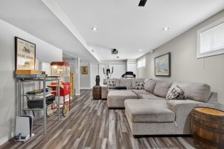 Sous-sol Le sous-sol entièrement aménagé offre une grande salle familiale polyvalente ainsi que des pièces supplémentaires pouvant servir de chambres d'invités, bureau à domicile, salle d'entraînement ou espace de loisirs. Une salle de bains complète ajoute à la fonctionnalité de cet étage.