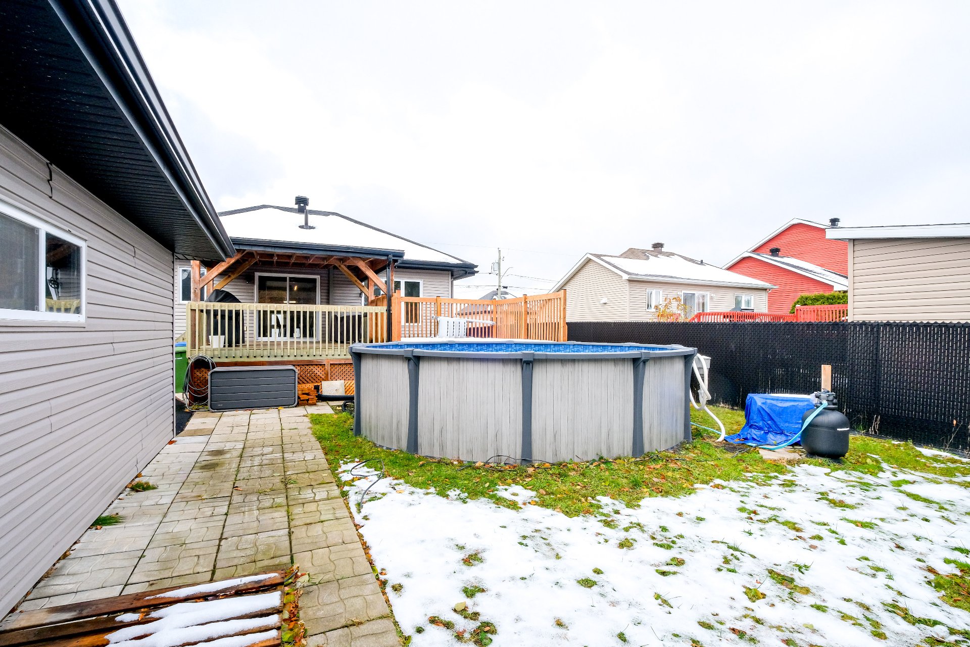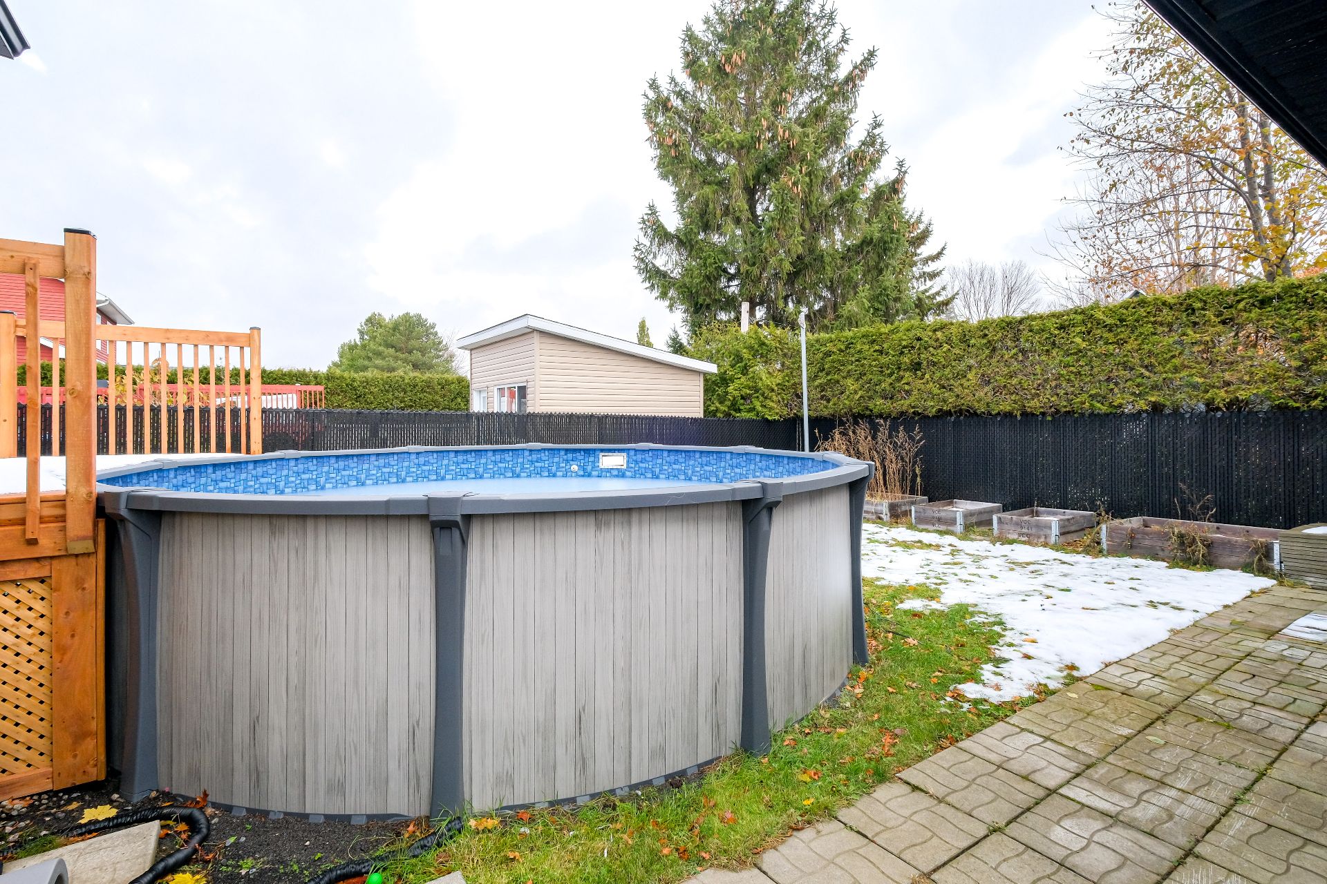 piscine hors terre installée en 2024, un grand garage